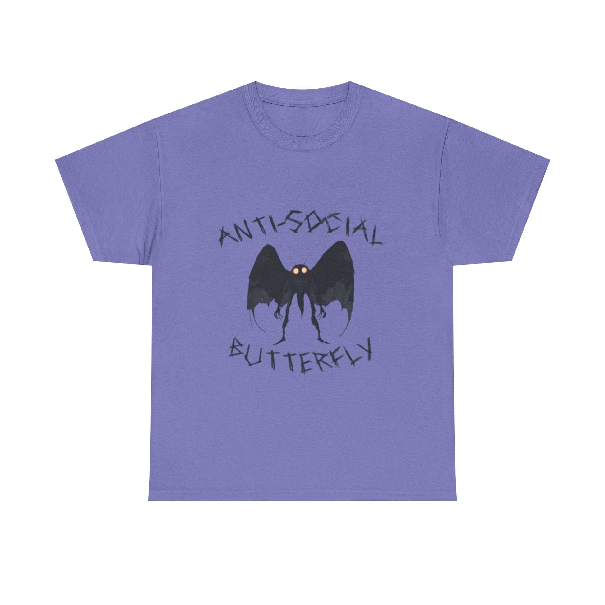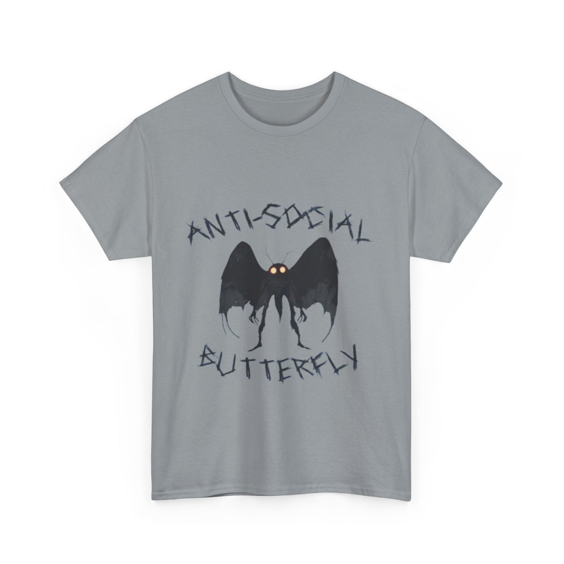 Unleash your inner rebel with the Antisocial Butterfly Tee! Featuring a mothman design, this tee is perfect for those who don't take themselves too seriously and embrace their unique, quirky side. Stand out from the crowd and make a statement with this playful and fun shirt. (No butterflies were harmed in the making of this tee.)