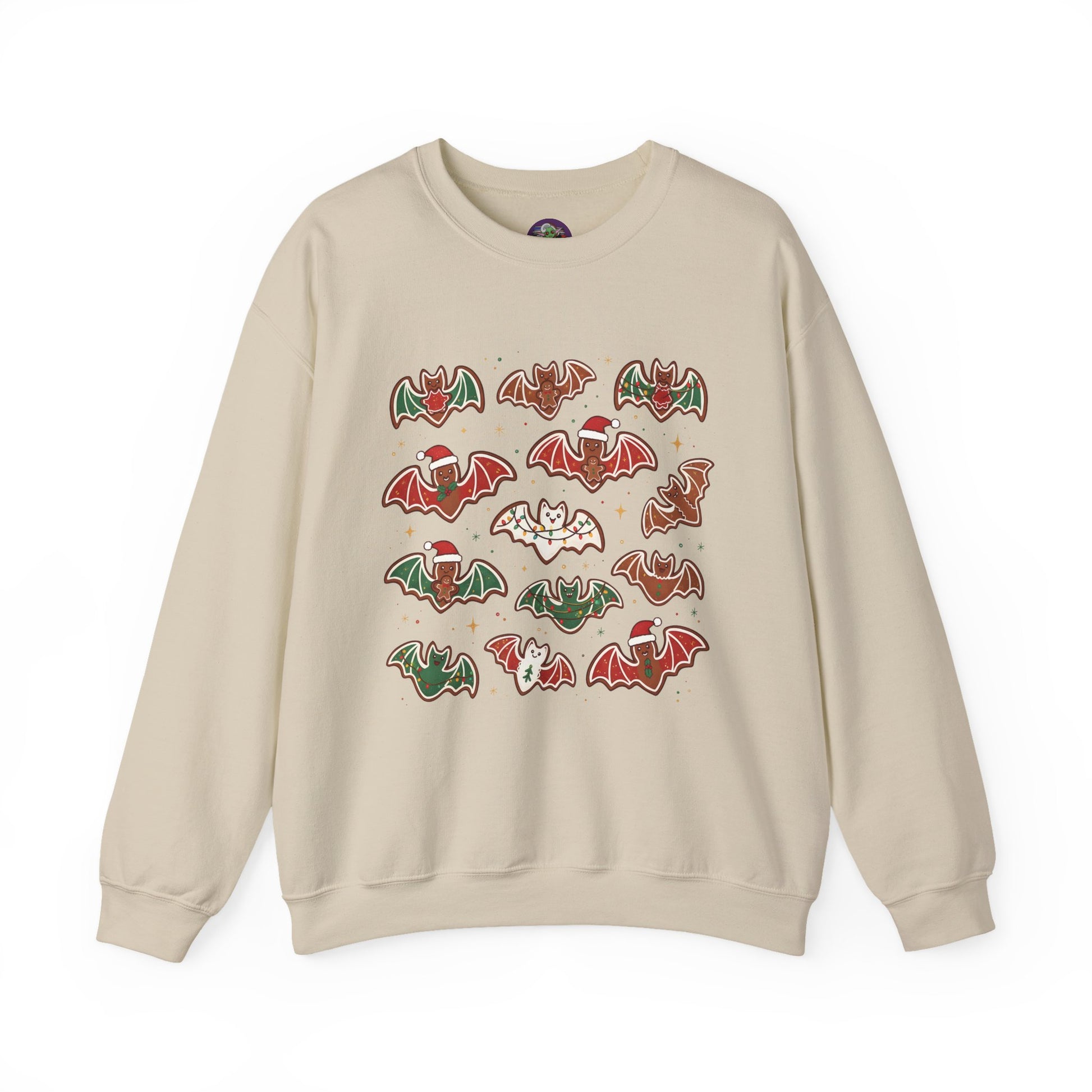 Soft, cozy, and a little bit mischievous — this crewneck brings playful Halloween energy to chilly nights. A row of cheerful bats, each wearing tiny holiday hats and scarves, drifts across the chest in warm red, green, and cream tones. Slip it on for brisk evening walks, low-key seasonal parties, or slow mornings with a warm drink — it’s the kind of cozy piece that quietly becomes part of your fall and winter rhythm.