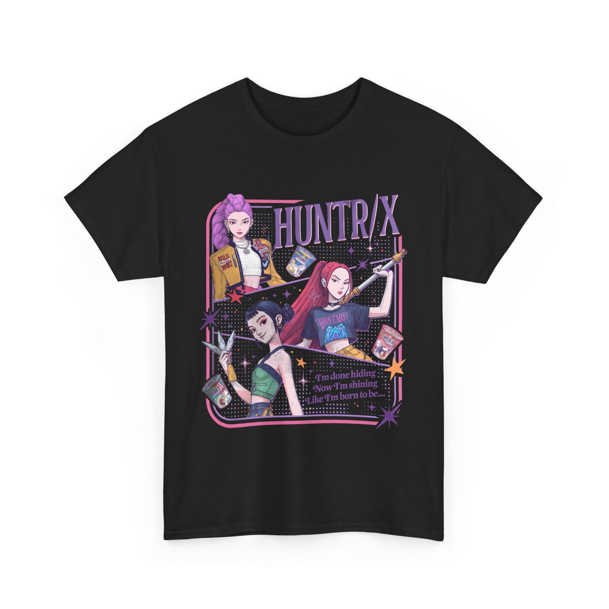 Perfect for anime lovers, this unisex heavy cotton tee is ideal for those who appreciate a comfortable fit and high-quality fabric. The design caters to Huntrix fans, giving off a unique, trendy vibe. It's a great addition to any casual outfit, making it relevant for everyday wear or special anime-themed occasions.